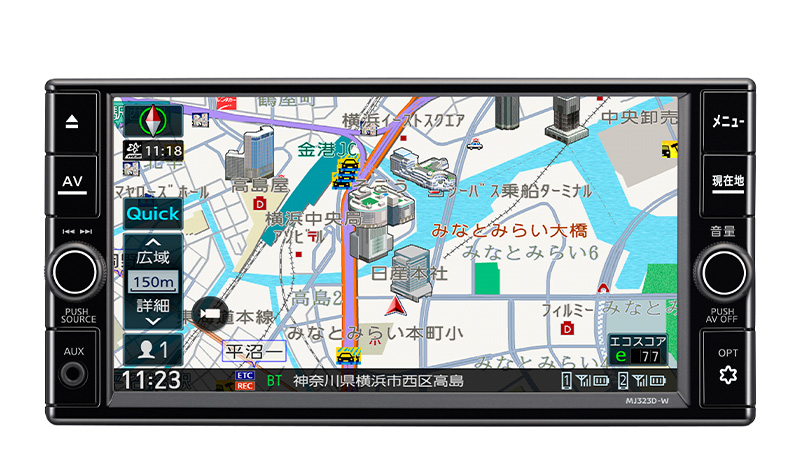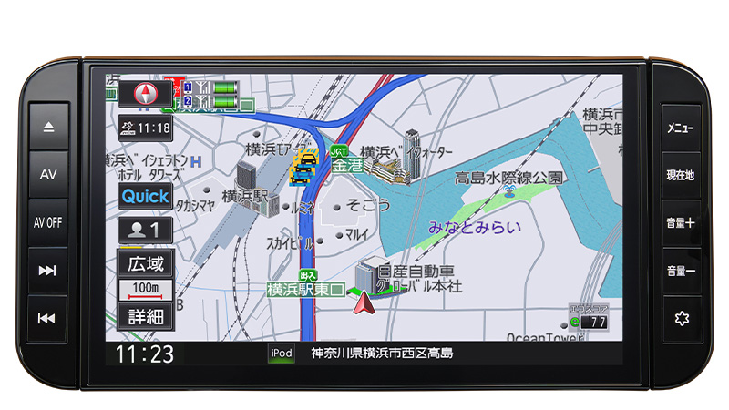 高画質で見やすい大画面を採用した車種専用タイプのナビ。