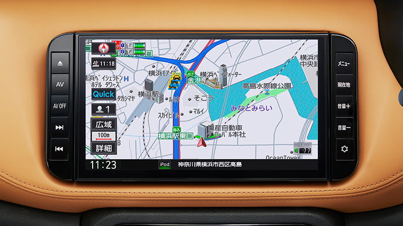 インパネにマッチする専用デザインに、美しく見やすい大画面ディスプレイを採用。インテリジェント アラウンドビューモニター、ドライブレコーダー、ETC2.0等と連動し、便利で使いやすい機能が充実。