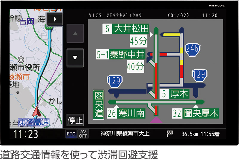 運転支援情報を活かした賢い道路利用で、ドライブがさらに楽しくなります。