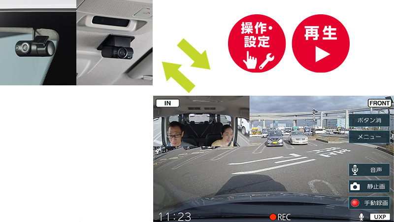 日産オリジナルドライブレコーダーの設定・操作・再生は、ナビの画面でカンタン操作!