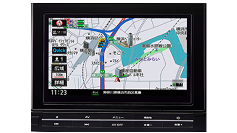 大画面の迫力と車種専用設計ならではの上質感とインパネとのフィット感が魅力。