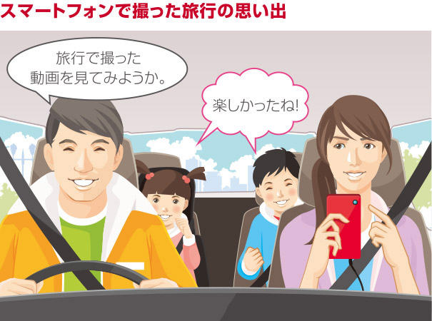 につないで撮りたての動画やお気に入りの映像を車内で再生することができます。