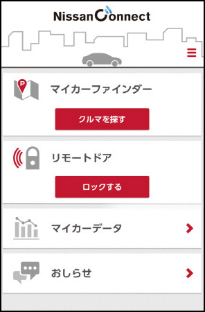 NissanConnect マイカーアプリをダウンロードしておけば、アプリからクルマのドアをロックしたり、駐車位置を確認したり、おでかけの時にとても便利です。