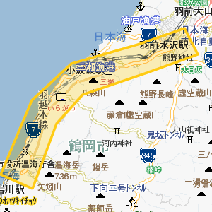 | 山形県 | 高速有料道路 | 日本海東北自動車道 | 鶴岡JCT/鶴岡西IC/三瀬IC/いらがわIC/あつみ温泉IC/25.8km |