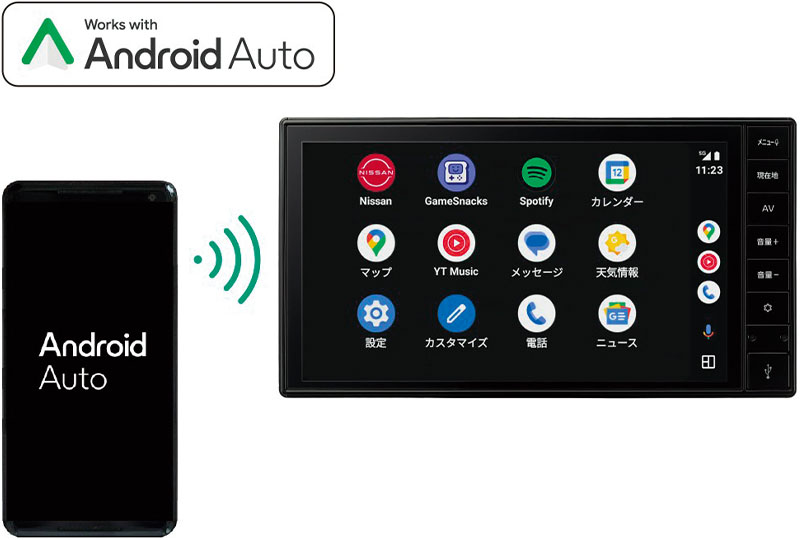 一部の機種とデバイスは、国によってご利用いただけない場合があります。ワイヤレス接続にはBluetooth接続と、Wi-Fi接続(自動接続)が必要です。ご使用のスマートフォンの「位置情報」の設定を「ON」にしてください。通信費はお客さまのご負担となります。走行中は動作が制限される場合があります。Android AutoはGoogle Inc.が提供するアプリケーションであり、各機能は予告なく変更する場合があります。Apple CarPlayはApple Inc.が提供するアプリケーションであり、各機能は予告なく変更する場合があります。