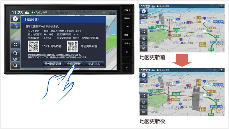 ポイント4 ワンタッチ地図更新 簡単操作で地図をアップデート! 最新の地図情報で快適に運転できます。