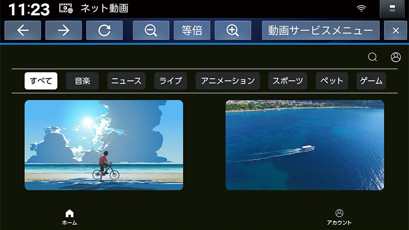 走行中は映像を見ることができません。通信費はお客さまのご負担となります。本機がGPS信号を受信できない場合、視聴できないことがあります。ネット動画で視聴可能な動画配信サービスは予告なく変更する場合があります。