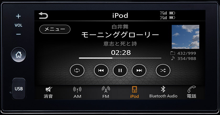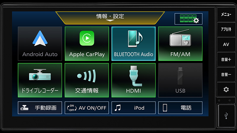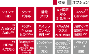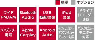 スマートフォンと接続し、普段使っているアプリ等を9インチ大画面で操作できます。スマートフォンと接続し、普段使っているアプリ等が操作できます。